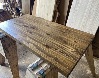 Diy tabletop and finish step 1: I painted my old kitchen table with general finishes gel stain brown mahogany and homemade chalk paint legs it came out pretty good considering in was my first time painting a large piece of furniture lightly sand the furniture before and after each coat i sealed it all with. Here's another diy dining room table that combines rustic charm with some throwback, contemporary vibes. Adjoin two 2x4s for the legs with pocket holes. See more ideas about diy table top, diy table, table.
